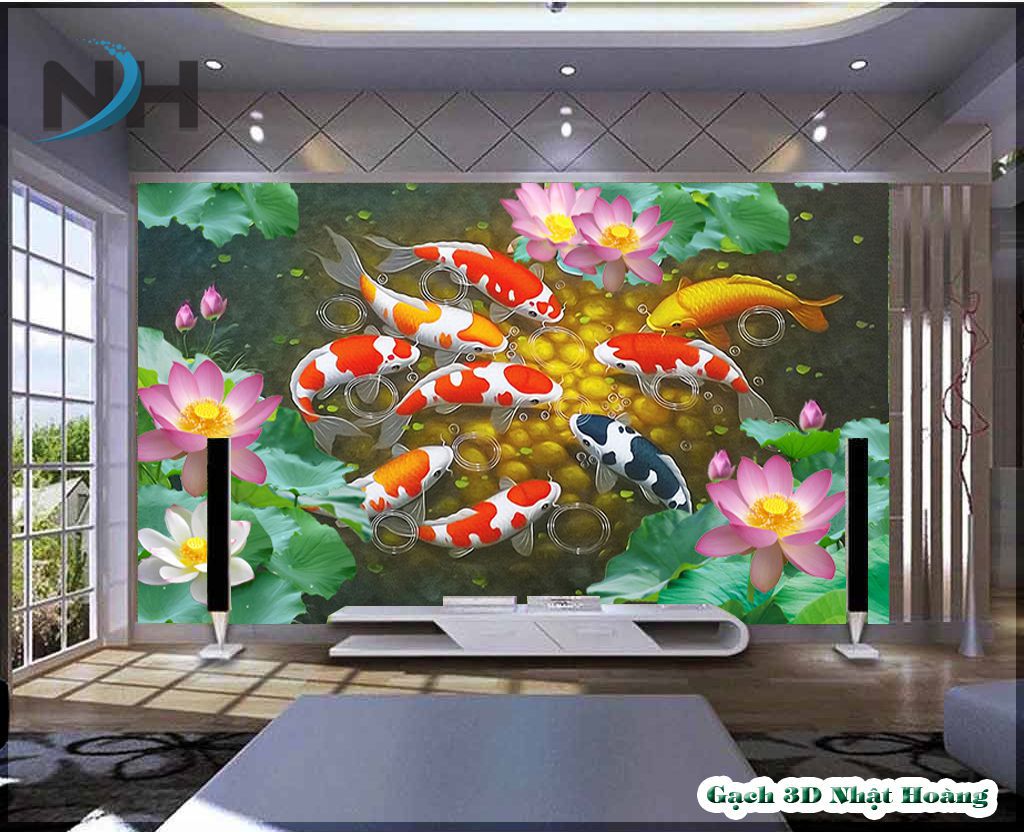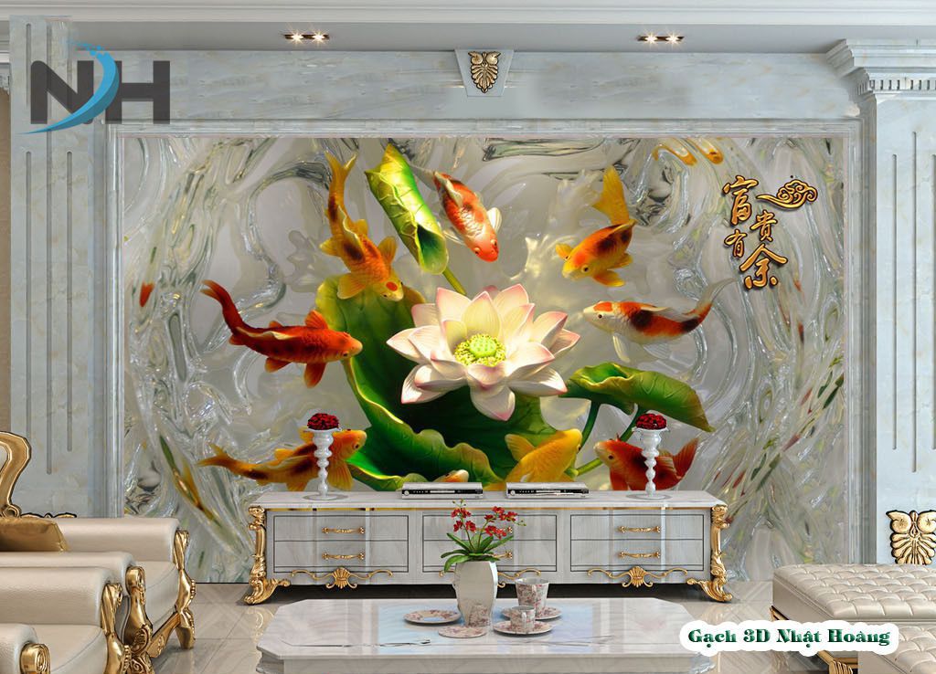 Gạch 3D hoa sen MHS21 và ý nghĩa gạch 3D cá chép hoa sen