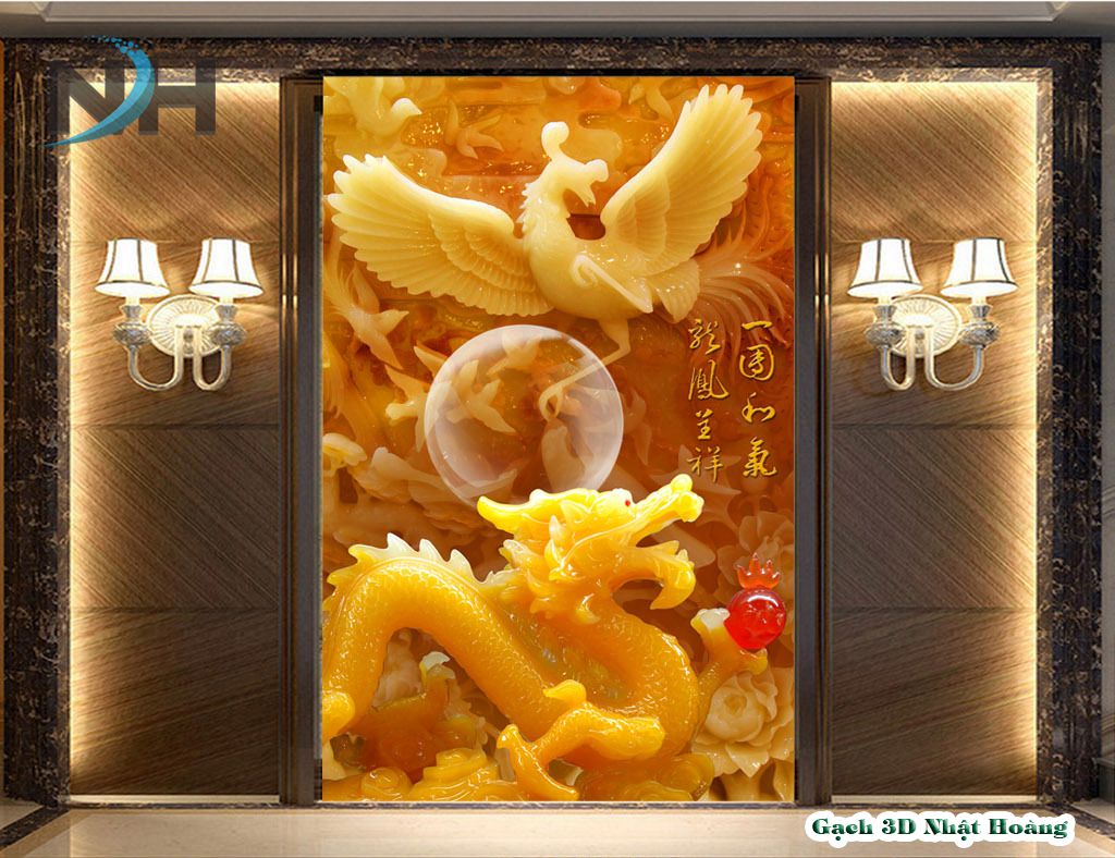 Gạch kính 5D mẫu Rồng Phụng mô tả vẻ đẹp của đôi Rồng Phụng cùng bay lượn trên không trung. Phượng Hoàng là loài chim quý có vẻ ngoài xinh đẹp. Nên rất được lòng yêu mến của nhiều người. Rồng được biết đến như là biểu tượng của quyền lực, giàu sang và phú quý.