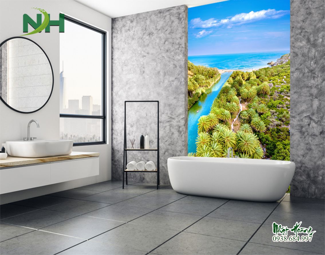 - Nếu đặt bức tranh thiên nhiên này trong phòng tắm thì thật sự là nơi tuyệt vời nhất. Có thể bạn sẽ tìm lại sự thu thái, mát lành, xua tan bụi bặm, mệt mỏi sau một ngày dài.