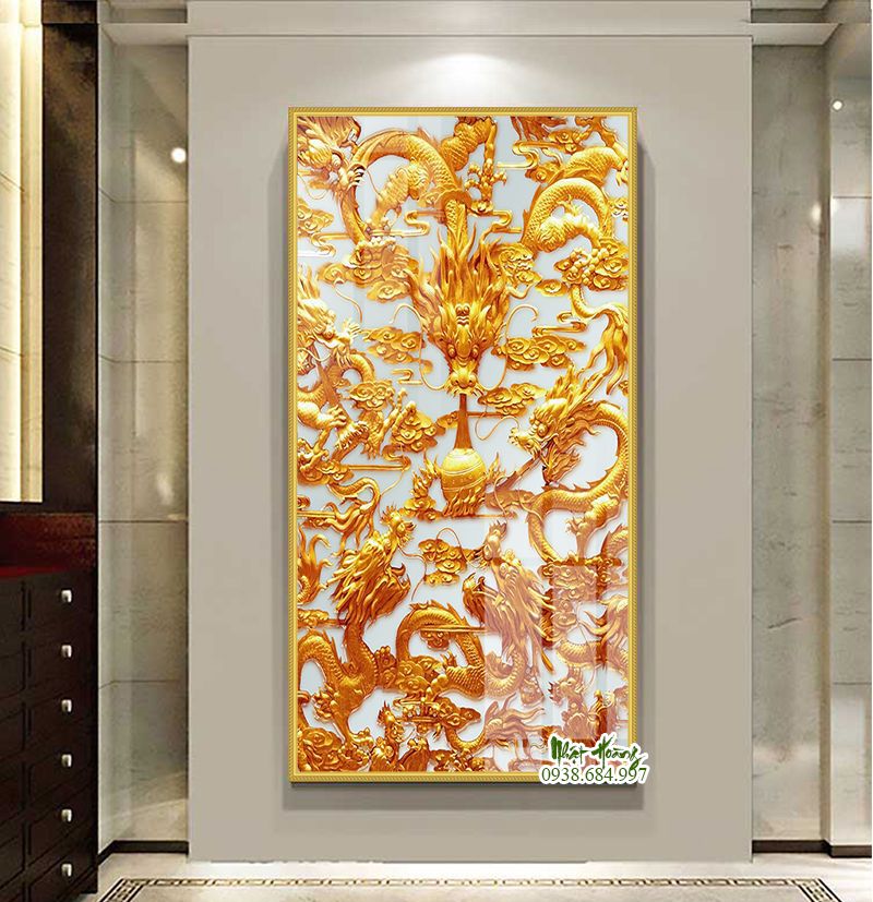 Hình ảnh về rồng mà bức tranh gạch lát tường 5D đã cho ta thấy lên được một sự hào nhoáng. Với ánh hào quang bao trùm mọi không gian trở nên sống động. Những chú rồng đang vây quanh và bảo vệ viên bội châu.