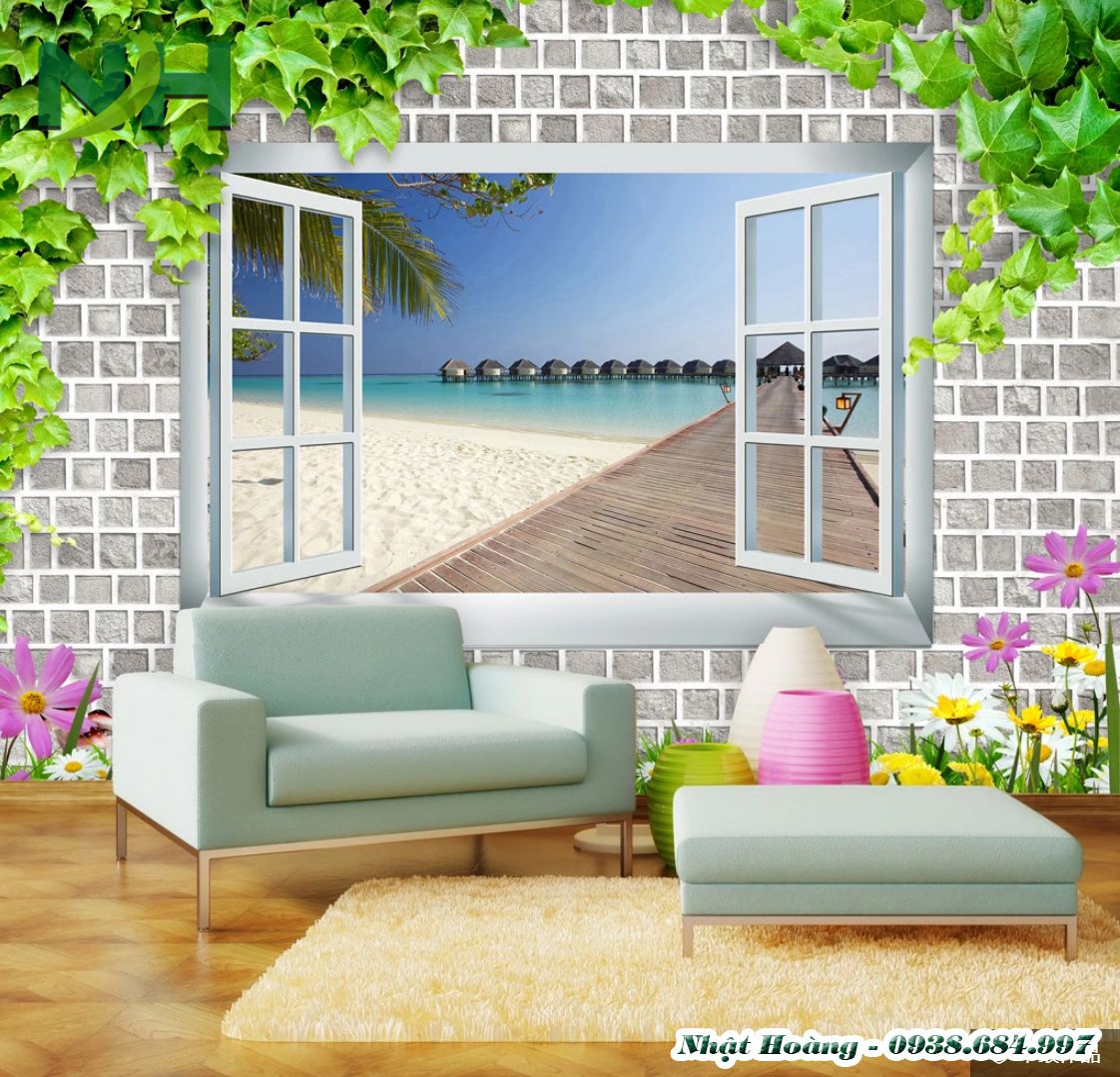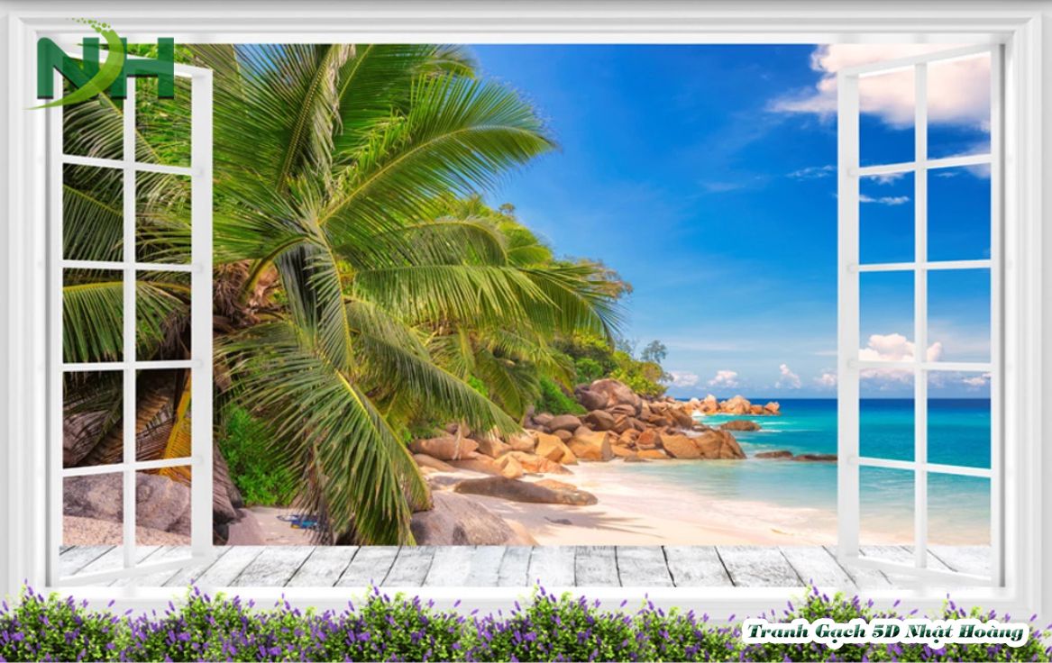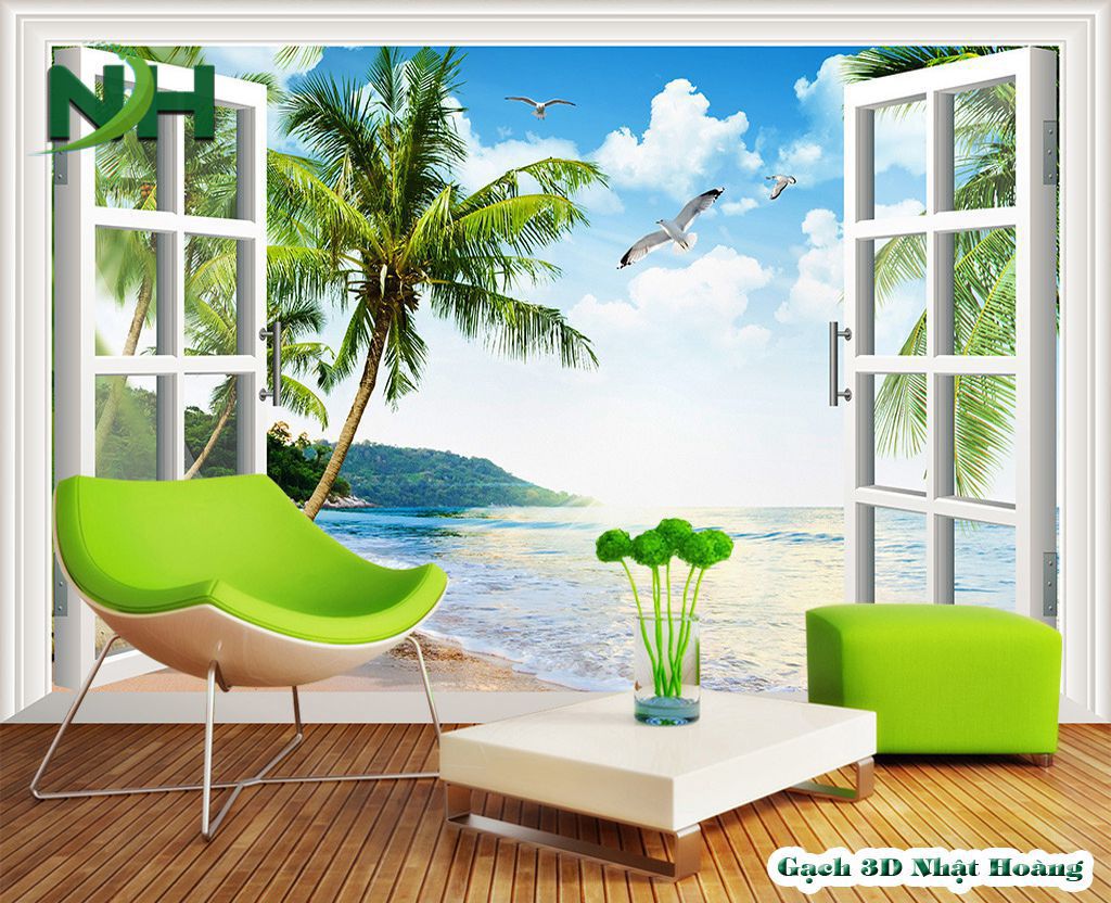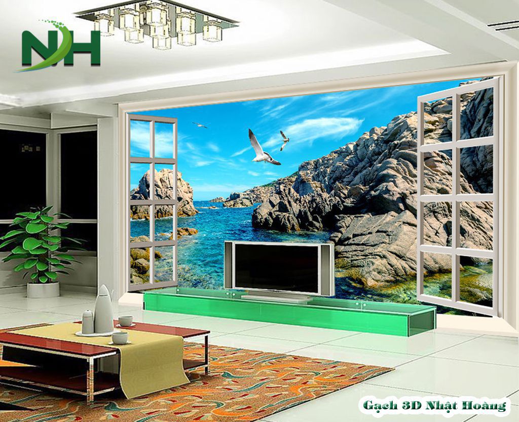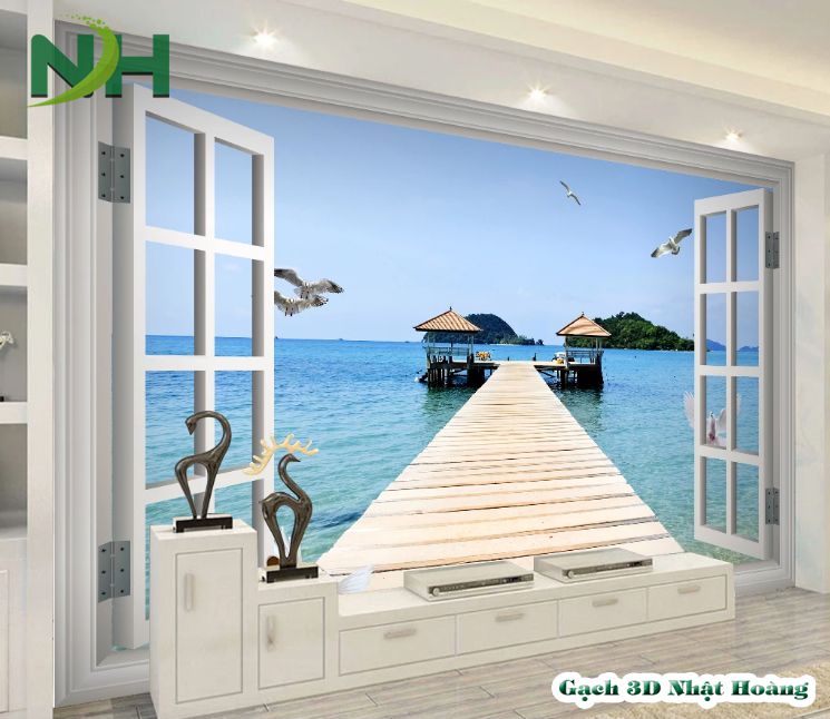 - Gạch 5D cửa sổ biển có khung cửa sổ mở ra biển cho cảm giác như ngôi nhà thật sự đang bên cạnh bãi biển mang đến nhiều điều thú vị hơn.