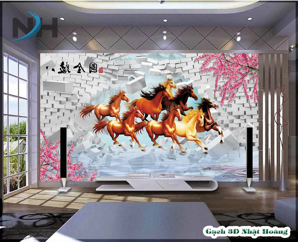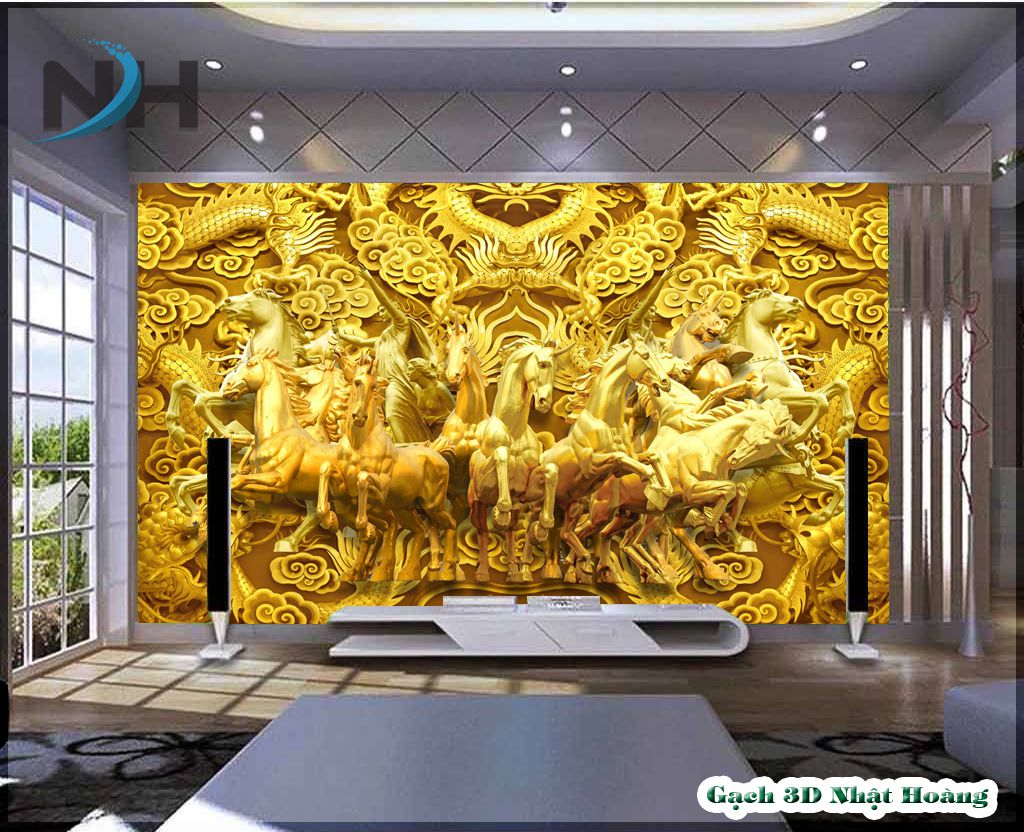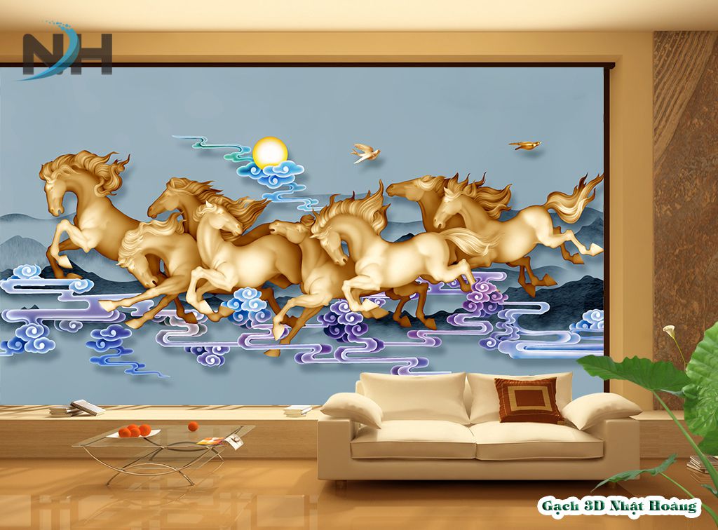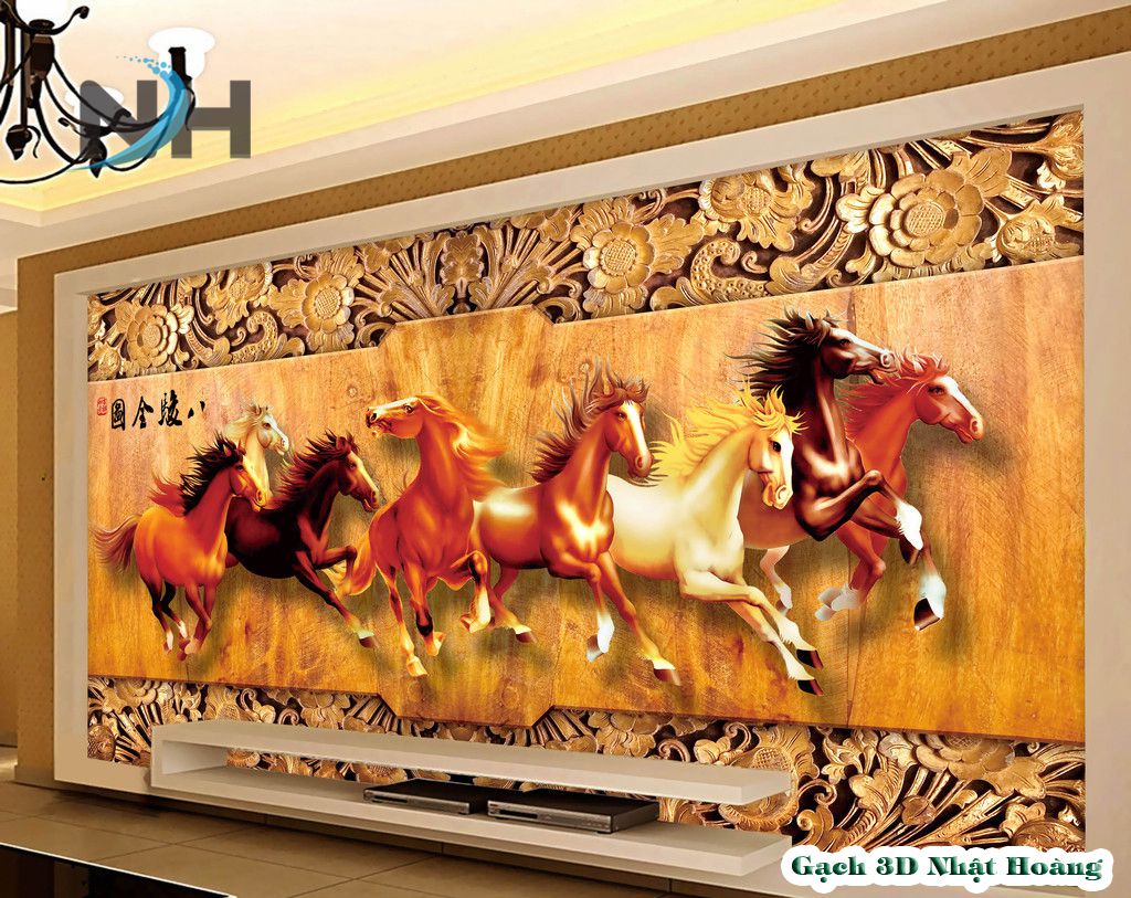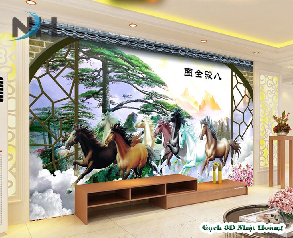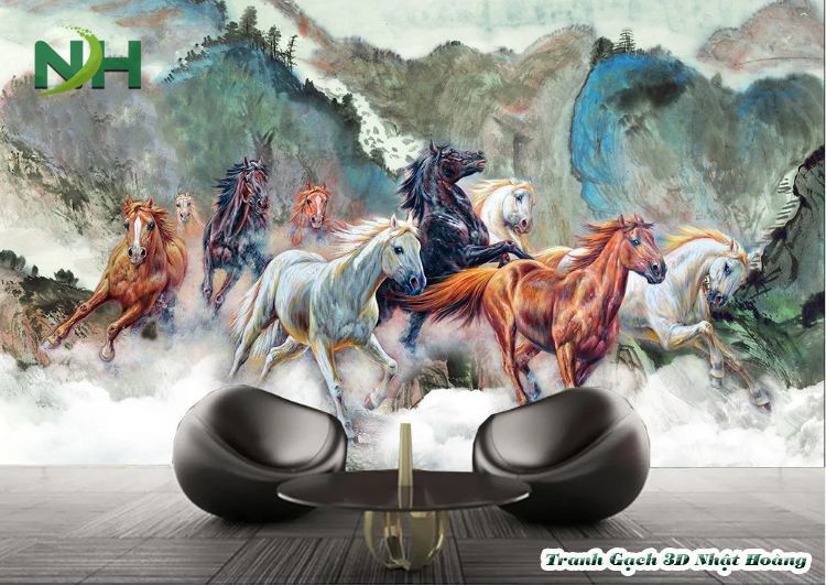 Tổng hợp 12 mẫu tranh gạch kính 5D Bát Mã (8 con ngựa)