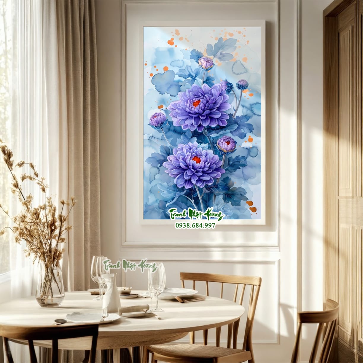 - Tranh treo tường hoa Cúc tím: Thể hiện sự thủy chung, thâm trầm và những tình cảm sâu sắc, nhẹ nhàng.