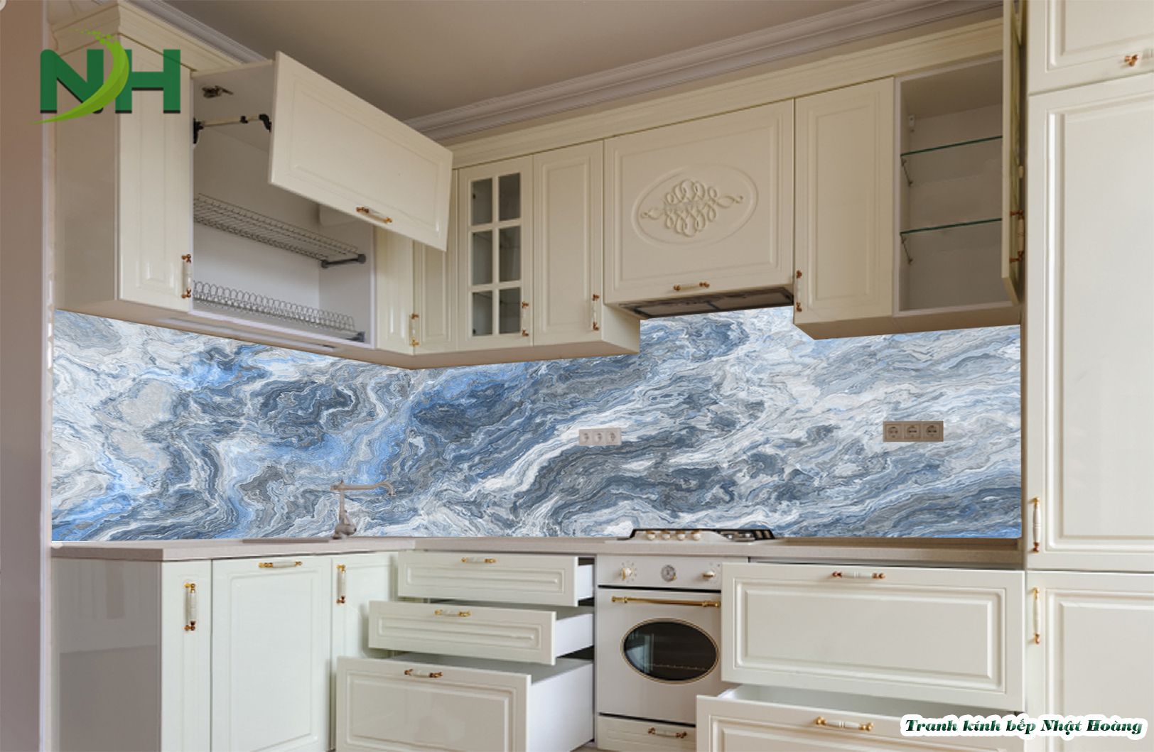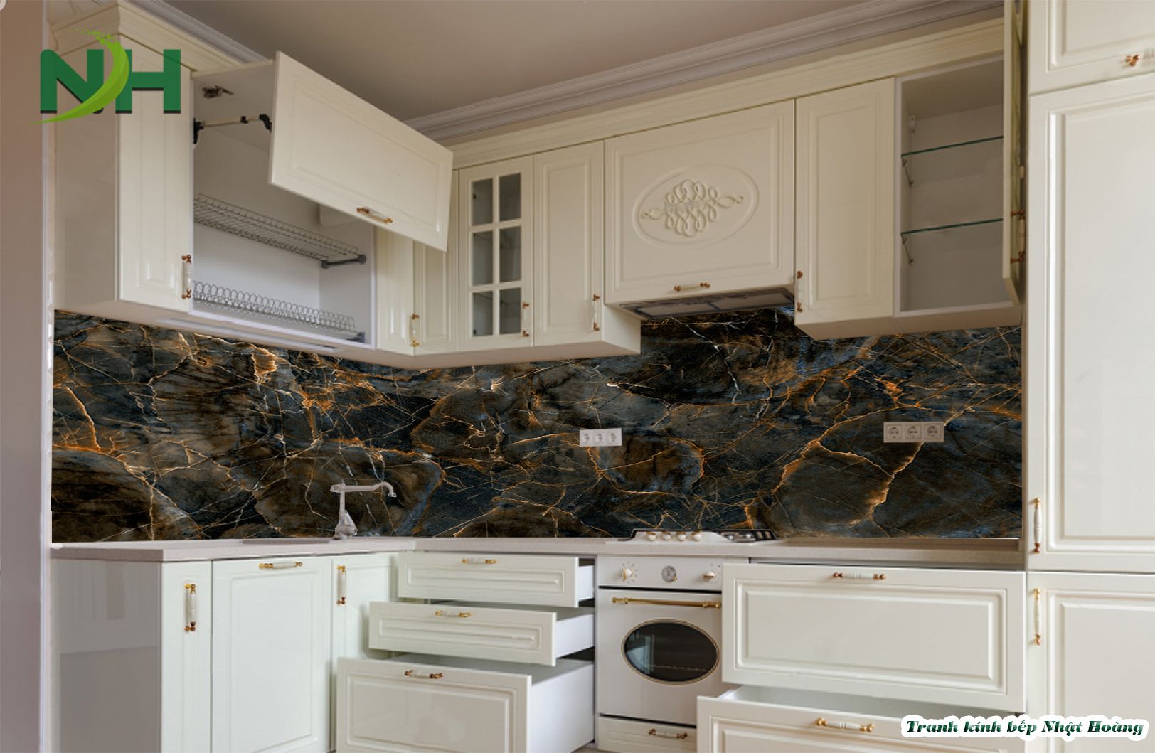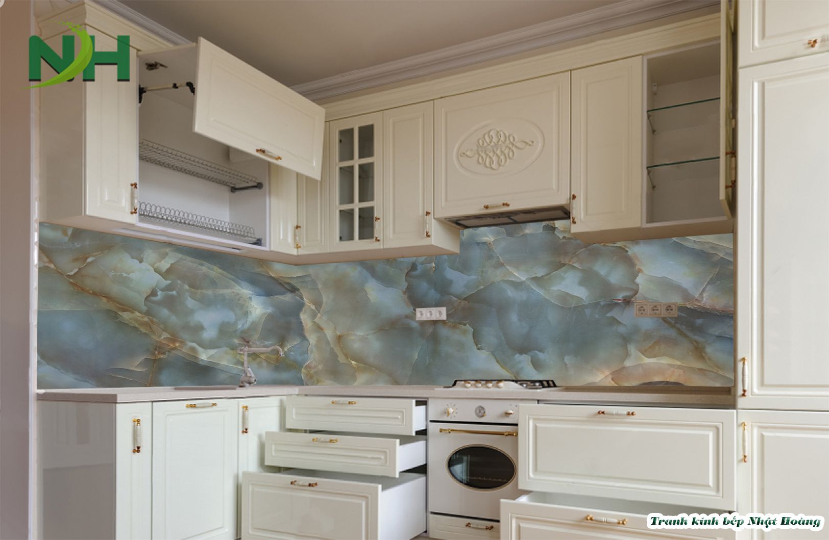 Top 7 mẫu tranh kính bếp vân đá V7