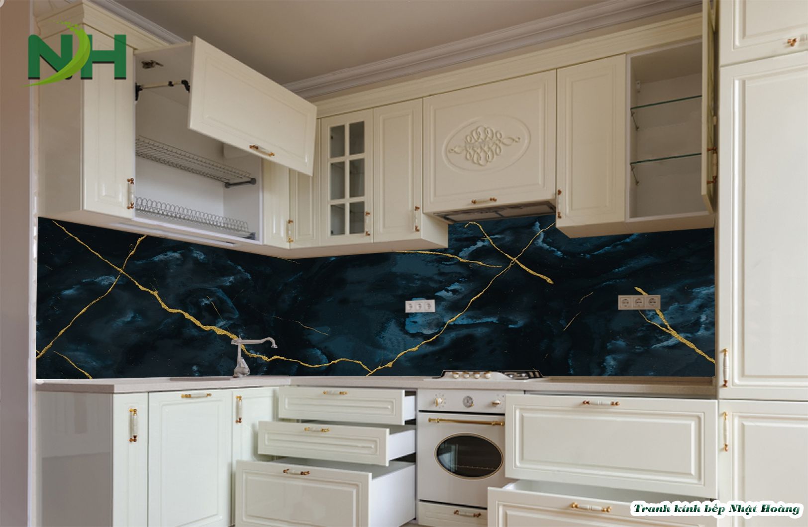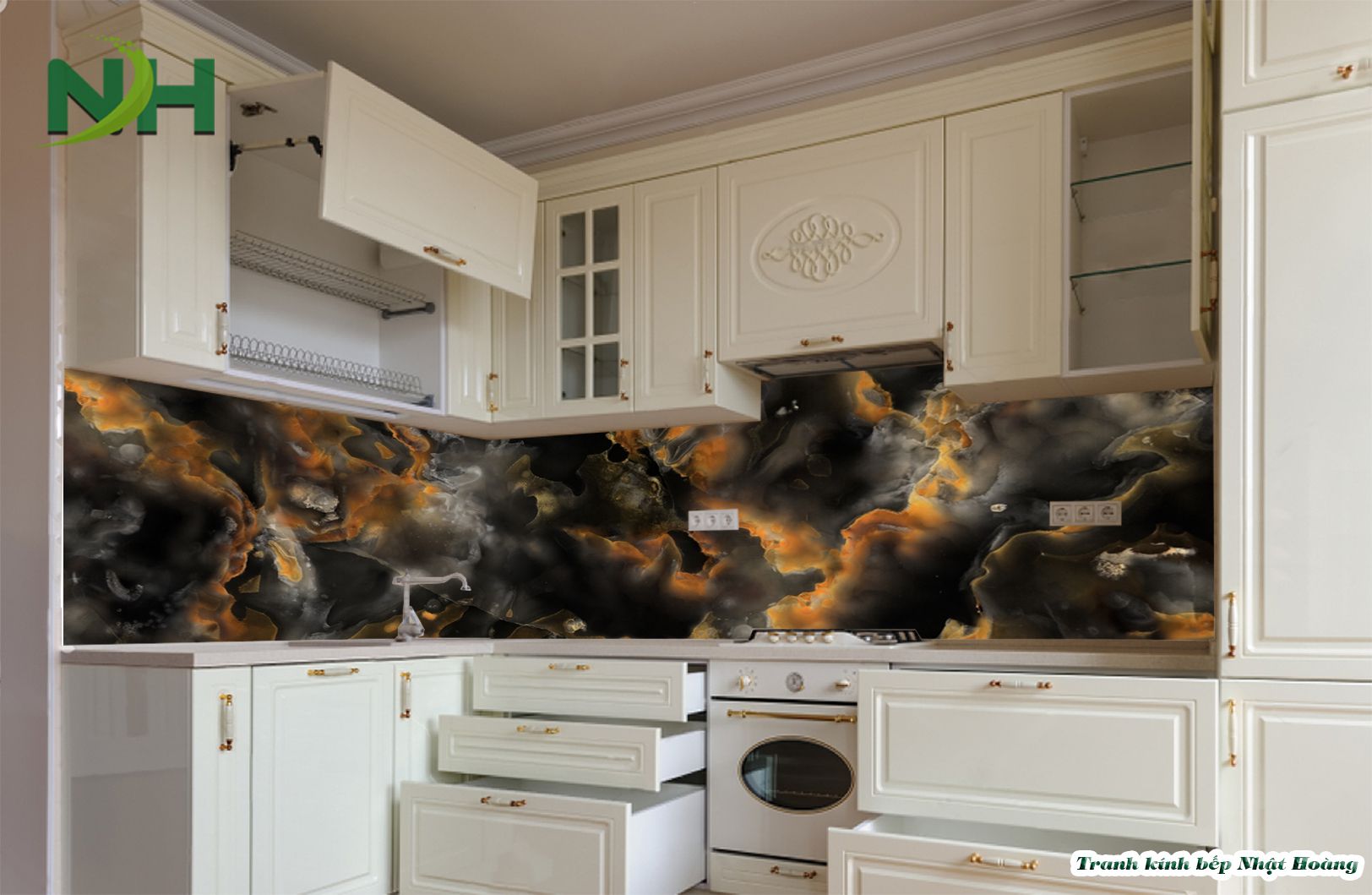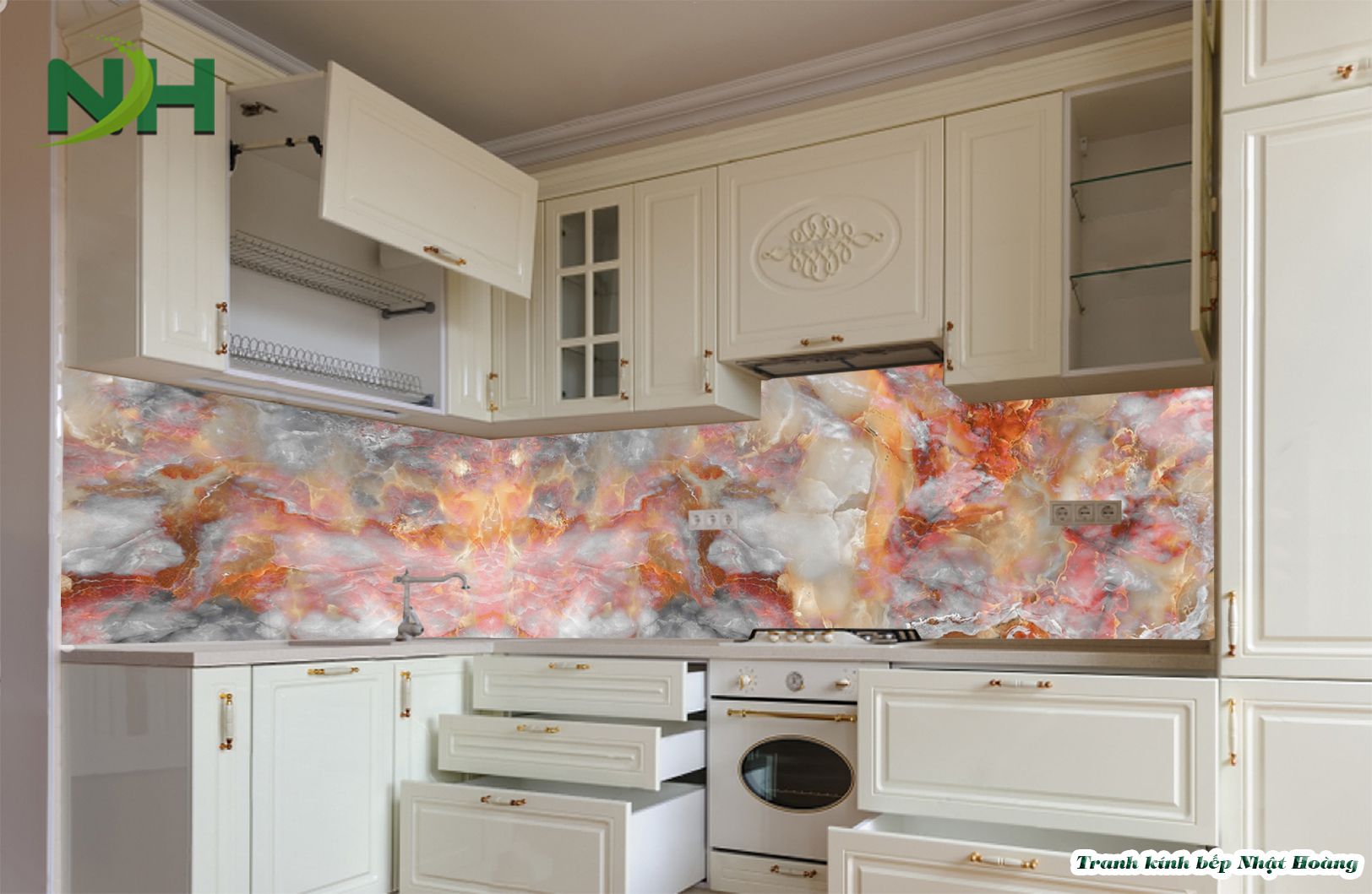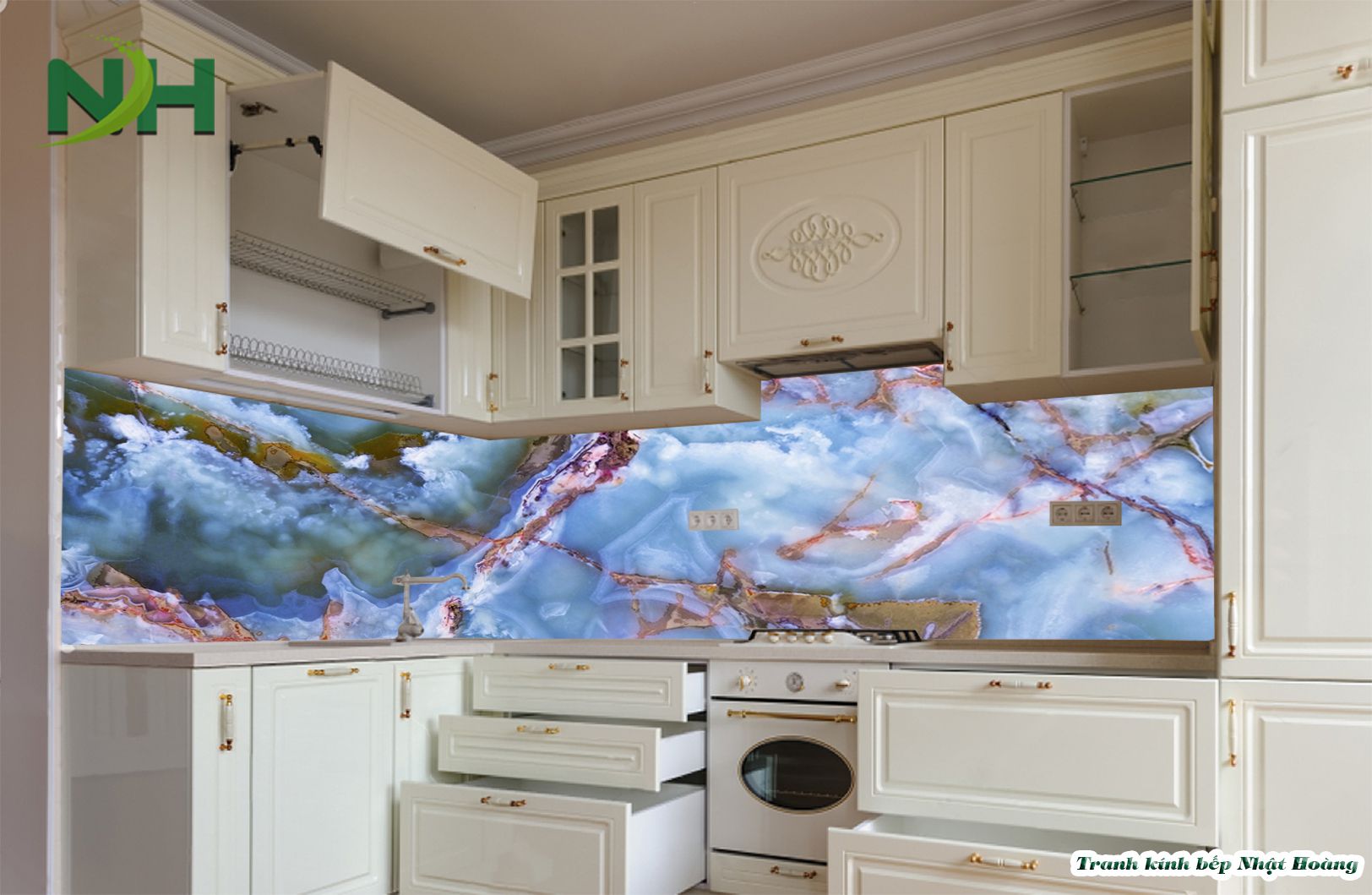 Top 7 mẫu tranh kính bếp vân đá V7
