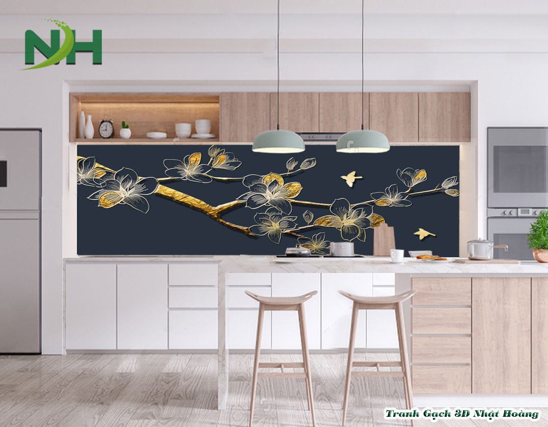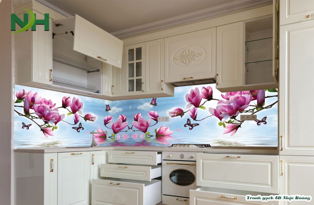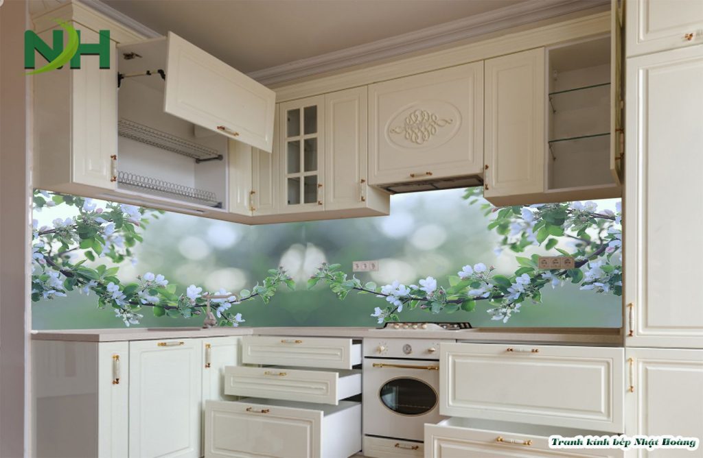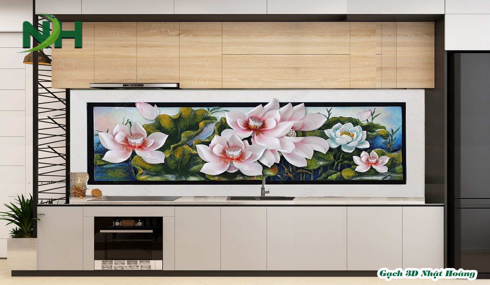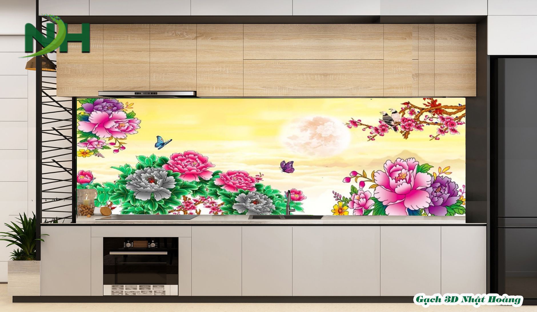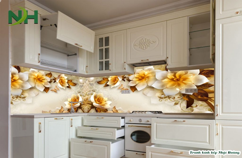 Tranh kính bếp 5D là những mẫu tranh in trên kính cường lực. Và trang trí không gian nhà bếp thêm sắc bớt đi vẻ ảm đạm.